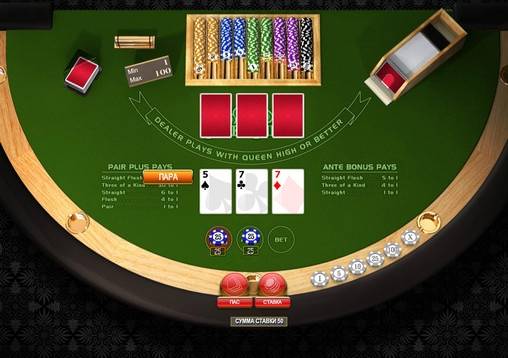 Bonus payoffs can be charged by Ante in «Poker Three». It happens when straight, three of a kind or straight flush are made at three player’s cards. Amounts of payoffs are following: