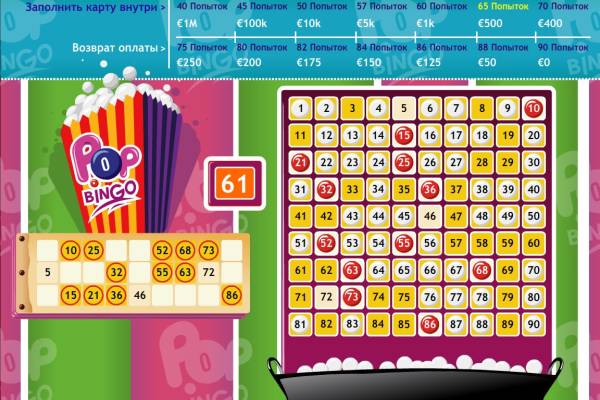Ninety successively numbered balls are available in Pop Bingo. To receive the minimum payout, you should fill in a card at least for eighty eight attempts.