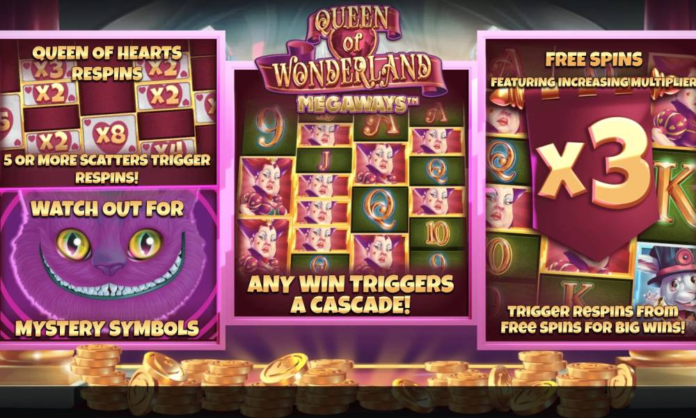 | Bonus games | Free Spins, Mystery Symbols, Megaways, Avalanche, Cascading Wins, Max Megaways, Cascading Symbols, Buy Feature, Queen of Hearts Cash Respins, Hold and Win Spins, Additional Free Spins, Free Spins Multiplier, Scatter symbols, Multiway (+1024), Wild |