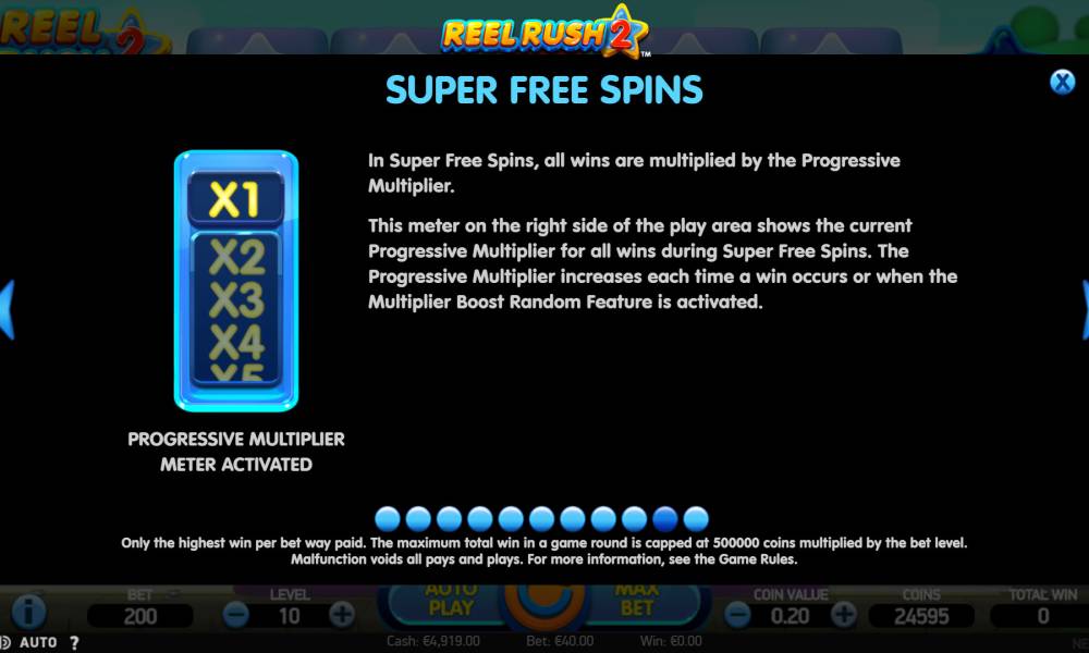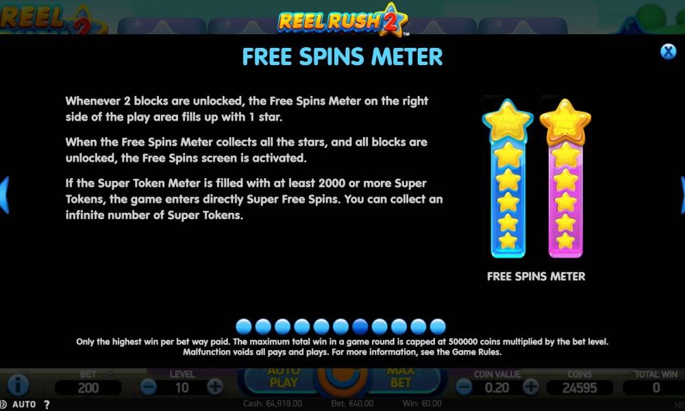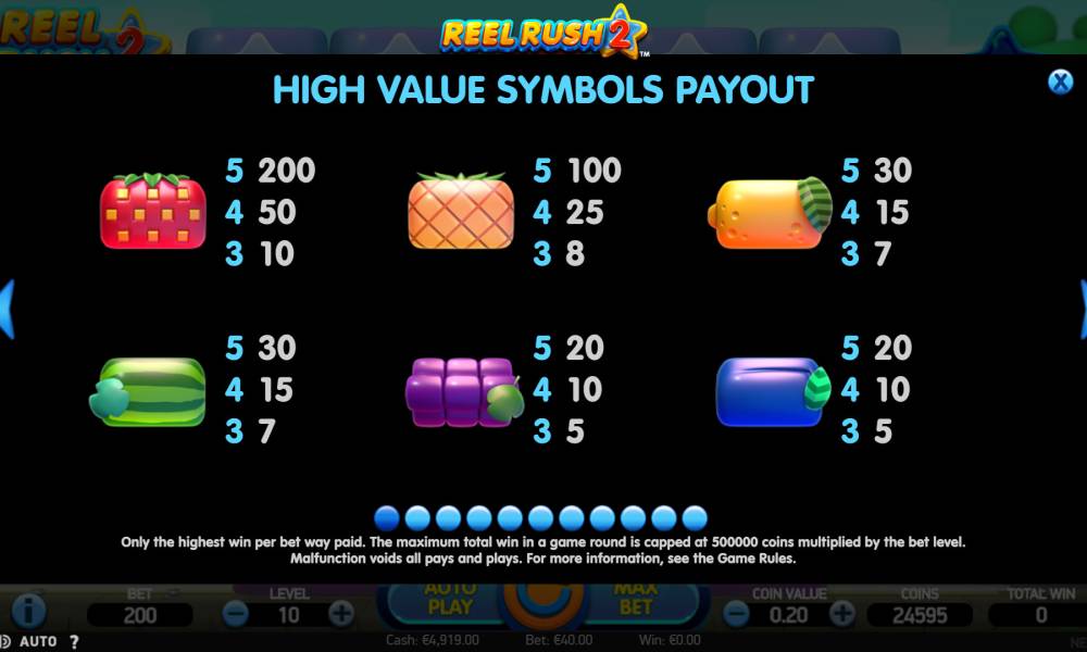 The paytable consists of several pages with rules and other information about the model. There is no need to download the Reel Rush 2 video slot.