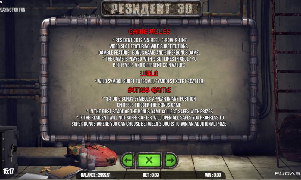 You can test the Resident 3D free or play for real money in the online casinos powered by Fugaso software. Experts' reviews and customers' feedback will help you choose a proper website.