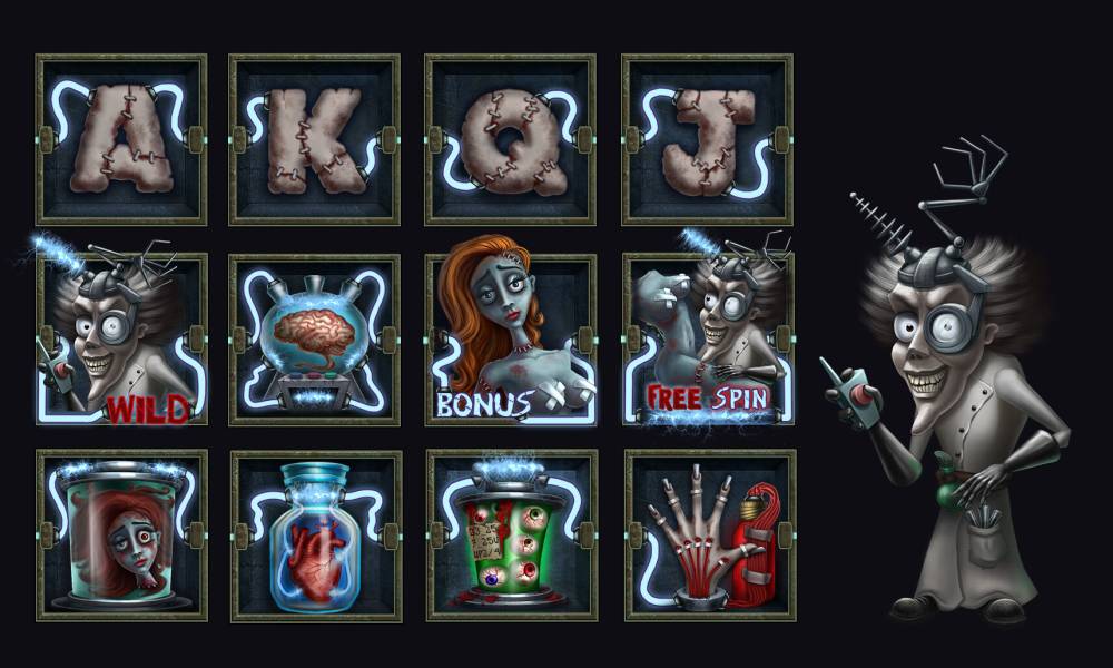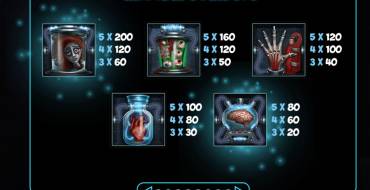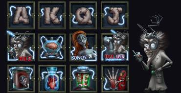 The reels of the video pokie depict the body parts of the mad doctor's beloved. Glass containers hold internal organs, eyes and even a head. Also the letters J, Q, K and A appear on the screen. Identical icons can fall out one after another in columns.
