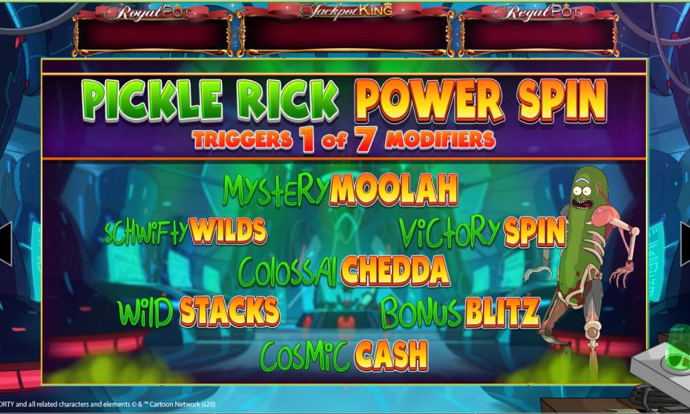 Casinoz experts haven't come across such feature-rich and exciting online pokies in a long time. In the Rick and Morty Wubba Lubba Dub Dub Jackpot King machine a lot of interesting opportunities to get payouts - money symbols, a spread of Rick and Morty images, free spins, mega-symbols, etc. Watch everything that happens on the screen is interesting, creating a feeling of immersion in a cartoon. So the game is definitely worth a try, the main thing is not to forget to keep an eye on the balance.