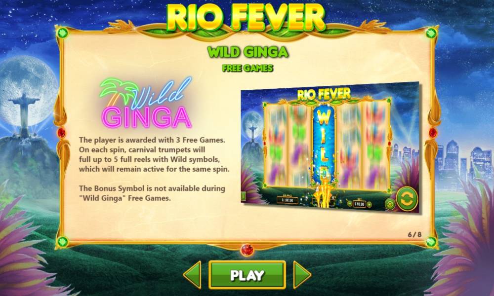 You can run the demo version of the Rio Fever directly here. on the Casinoz website or at one of the many online casinos using the developer's software.