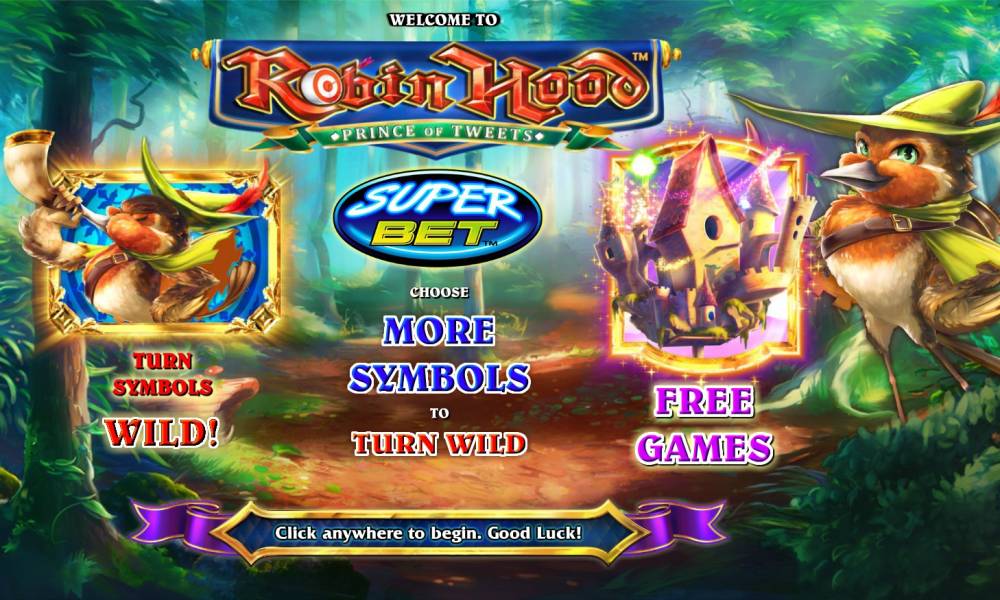 «Robin Hood: Prince of Tweets» is a slot machine with five reels and twenty symbols at the main screen. It is possible to play by all forty active lines only, but the bet must be twenty-divisible. The coin value varies in range from one cent to two euro. The slot accepts from twenty cents to forty euro per spin in the basic mode. However you can also use SuperBet. In first mode it increases the total bet per spin to fifty coins and up to one hundred credits in second. Please read about the preferences it might give you below. Except the bonus bet mentioned above, this slot machine is provided with different kinds of symbols, including elements with advanced functions, free spins, unique prize features, a round of gambling feature and other interesting options, carefully described below in the review. The rules of winning combinations made of ordinary symbols are very traditional, so we won’t pay attention to this. The beginners can use the visual scheme of combinations provided by the pay table. Wins are calculated by the classic rules too: the bet per line is multiplied by the index of formed combination (from x1 to x250). In case of multiply combinations formed at different lines by results of a single spin, all payoffs are summarized. There is a gambling feature which suggests you to guess a color or a suit of the face-down card to increase an amount of your win two or four times. It won’t make you any difficulties too. The theoretical payback index of depends on the amount of your bet. It is increased for about three and a half percent when you place the maximal SuperBet comparing to this index for the basic bet.