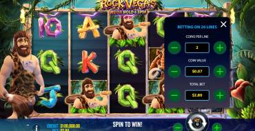 The Rock Vegas slot machine from the Pragmatic Play provider has a standard playing field, consisting of 5 reels with 3 symbols. Payouts are made on 20 lines.