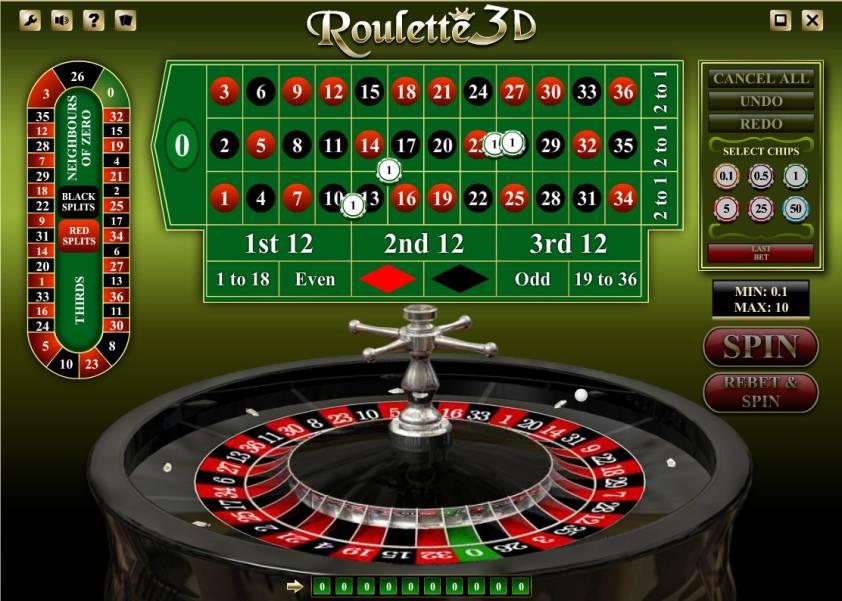 Roulette 3D has traditional European rules with extra call bets. Thirty-seven numbers (0 to 36) arranged in the traditional sequence are painted on the roulette wheel. The table layout has standard betting fields and one extra racetrack. The aim of the game is to predict the pocket of the wheel into which the ball will fall and get payouts for the bets made in advance. It is allowed to combine different bets at your sole discretion, but you cannot exceed the total limit. Gamblers can wager using chips whose denominations are: 0.10, 0.50, 1, 5, 25, and 50 dollars. The minimum bet is ten cents for all positions. It is possible to stake up to ten dollars on straight numbers. Any bet on equal chances cannot exceed one hundred and twenty-five dollars. The gameplay of Roulette 3D consists of the usual steps. The customer makes bets. The virtual dealer spins the ball. As soon as it lands, winning bets will be paid. There is no need to list all the positions on which users can wager in this model. The basic outside and inside bets are discussed in the article that deals with the common rules for roulette. It is important to note that bets on sectors, neighbors, as well as red and black splits can be made on the racetrack.