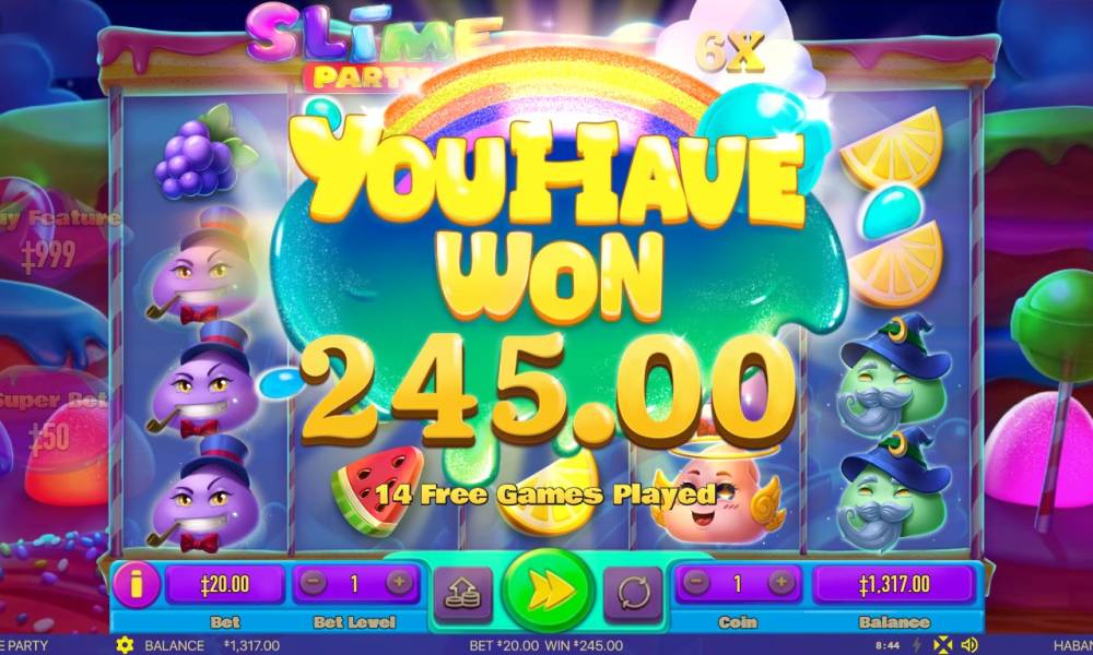 If an online casino has set a decent RTP value, then you should definitely try the Slime Party slot, even with its high volatility. After all, if you’re lucky, multiplying the bet by 48,900 times will completely recoup the risks and give you a lot of unforgettable sensations.