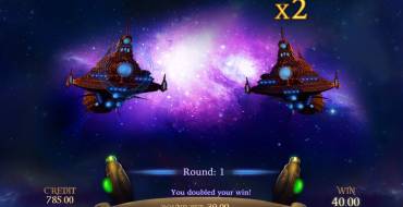 By the end of a winning spin you can try to increase the payout. If you take a risk, you move to the special screen with two enemies in front of your space ship. You need to shoot one of them. If you make a lucky attempt and destroy the enemy, your win is doubled up. Otherwise you lose the bet. It is possible to act up to ten times running, but there is no right for mistake.
