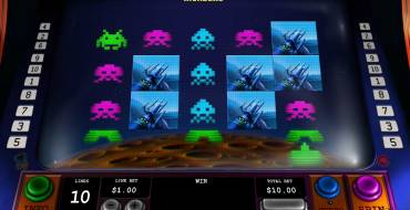 «Space Invaders» is an online slot machine with ten pay lines, always active on default. Bets must be same per each of the lines. It is possible to place from one cent to twenty dollars per line, so the slot accepts from ten cents to two hundred dollars per spin.