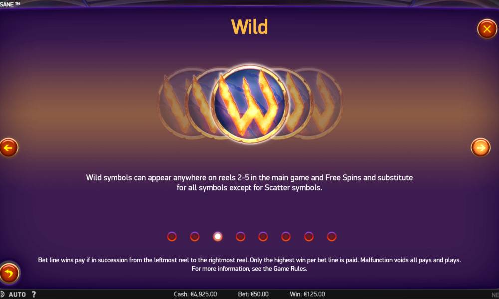 The paytable consists of eight pages with a visual description of the rules, bonuses and features.