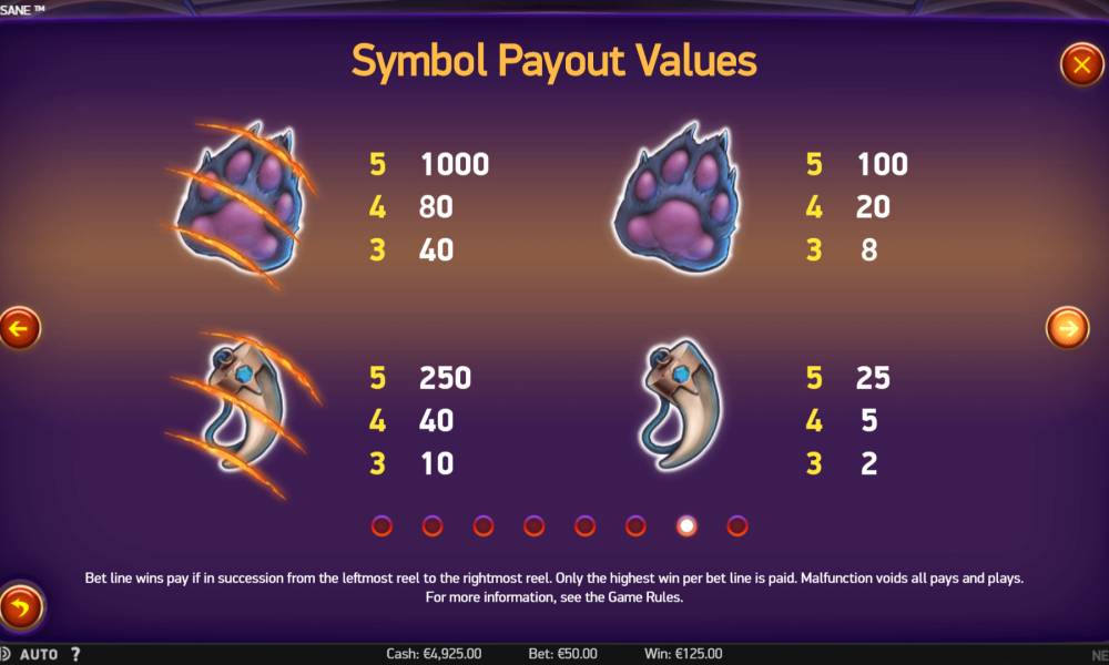 You will see three basic symbols at the reels of this game: a wolf, a paw and a fang pendant. All these icons are also presented in super versions.