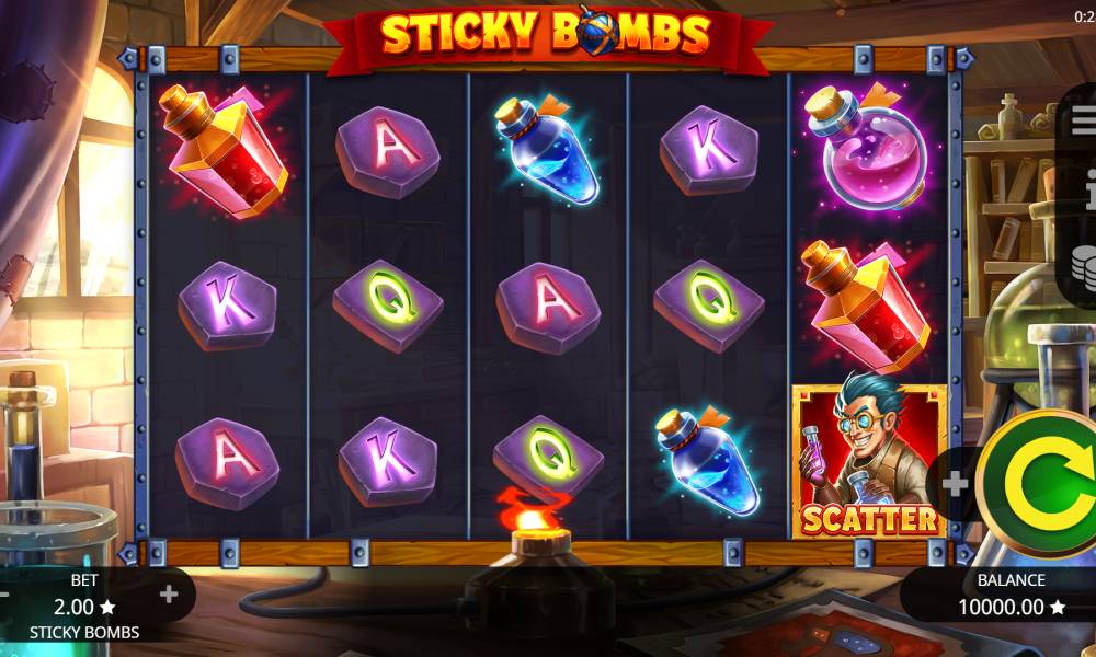 Science is the main theme of the Sticky Bombs slot machine from the Booming Games provider. If you are lucky, you can win large prizes, up to 1,445 bets.
