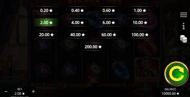 You must make the bet before every spin. The minimum bet is 20 cents, and the maximum - is 20 dollars per spin.