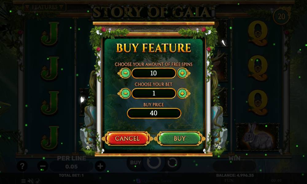 The rules of the Story Of Gaia pokie are quite standard. There are five reels with four rows and twenty fixed paylines. To form a winning combination you need to collect at least three identical symbols in a row (or with a joker) starting from the left reel. The player can set the bet in the range from 0.2 to 200 euros. There are eight regular and two special symbols in the game. During free spins, special mechanics are activated with Expanding Wilds, which expand and trigger respins when they fall out. In standard mode, the Extra Wilds bonus can randomly activate, adding extra jokers to the reels.