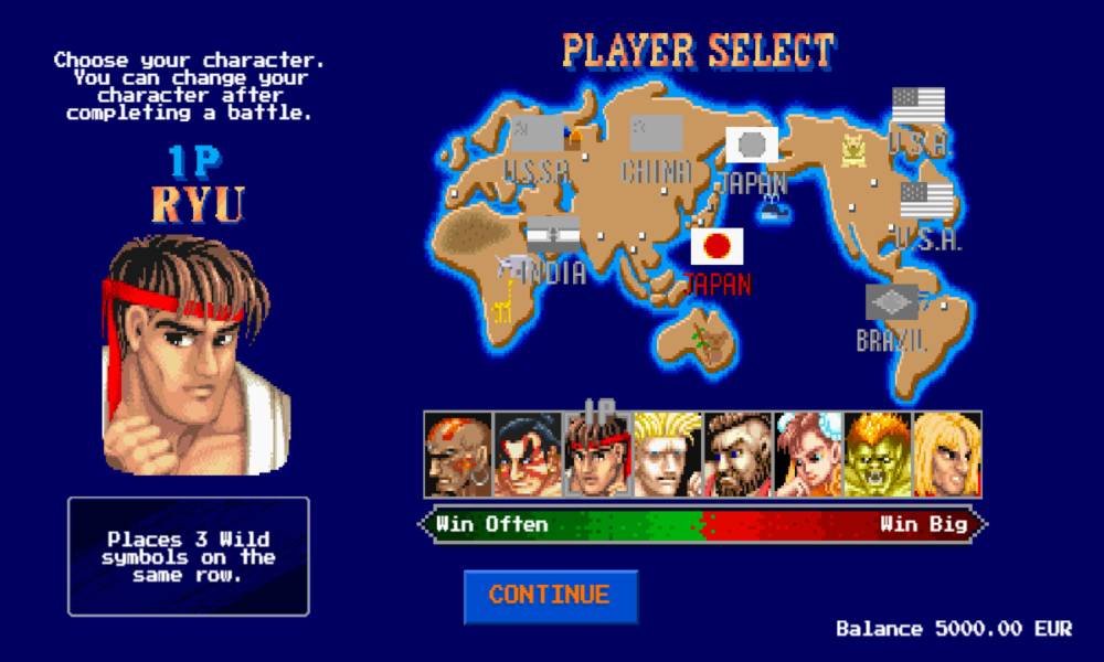 According to official information from the developer, the variability of Street Fighter II: The World Warrior is quite high. This is not to say that the payouts are small, but be ready for significant bankroll fluctuations and tangible variance in general.