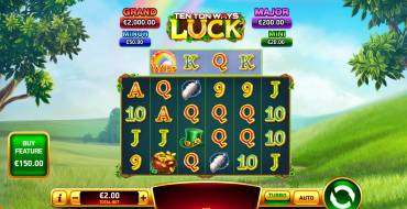 The pokie has a calm design with no distracting animations. Above the field are written the jackpot sizes, which change with the increase or decrease of the bet. To the left of the field is the Buy Feature button. The price of the buy bonus is written right on the button. The rest of the interface elements are gathered below the field and divided into 2 blocks. The balance is displayed on the narrow black bar at the bottom. To the left of the balance there are 2 buttons - sound adjustment and transition to the rules section. Above the black bar there is a control block. On it from right to left there are: start reels manually, settings and start autorotations, turn on/off Turbo mode (drums will rotate faster or slower). In the center of the block is an empty Win window - in it appears information about the winnings, if in the current rotation it is received. To the left are buttons to change the bet, and the i button to go to the payout table. From my experience playing Ten Ton Ways Luck, my advice is: