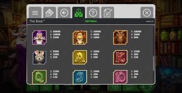 The menu (three lines at the button at the left) consists of the user’s settings, the pay table, the general rules and etc. It is possible to set up the sound parameters, size of the screen, options of the gameplay and the automatic mode.