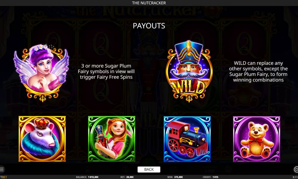 The Nutcracker is provided with ordinary symbols, a Wild, a Scatter and two varieties of free spins with advance features.