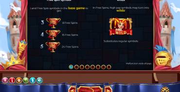 You will land 8 basic symbols: a knight, a king, a queen, and a servant, as well as 4 card suits. Characters are A, K, Q, and J card faces. Same symbols often land in vertical stacks, covering entire reels.