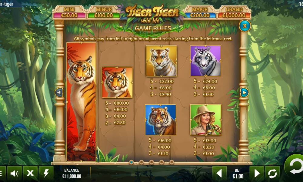 Animals are the main theme of the Tiger Tiger slot machine from the Yggdrasil provider. If you are lucky, you can win large prizes, up to 2,000 bets.