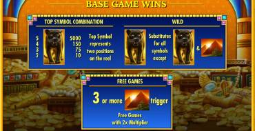 There are also such special symbols as Wild (a panther) and Scatter (pyramids) in this game. Please read about it below:
