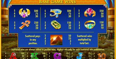 The standard symbols which form combinations by the basic rules, are images of different pendants. They are designed in style of different thematic items connected with the culture of Egypt.