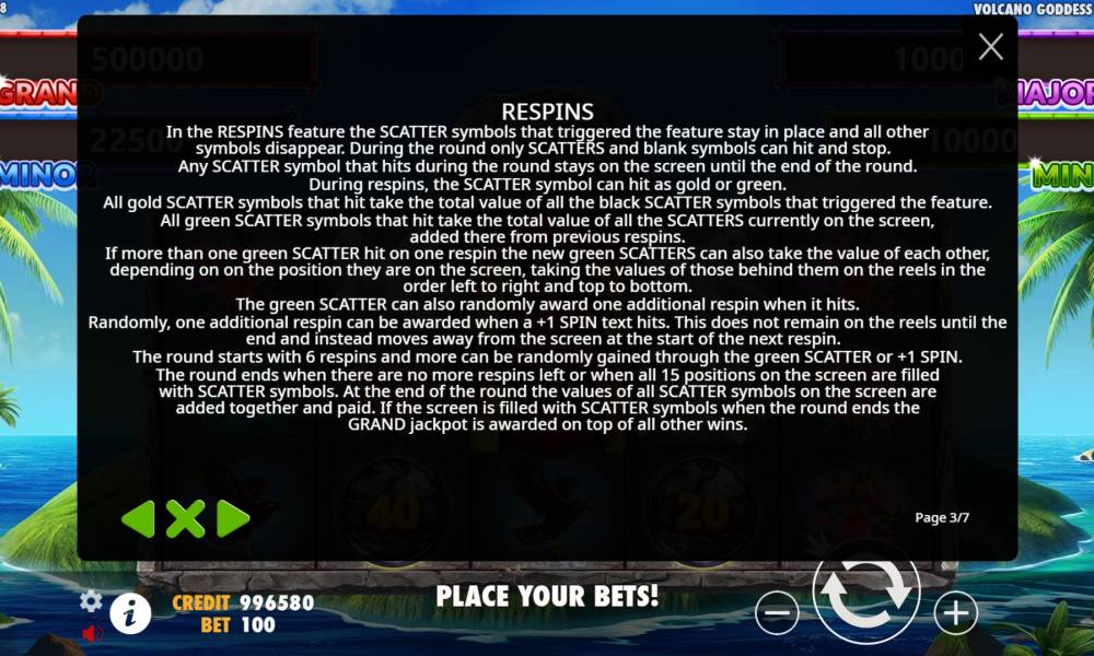 The Volcano Goddess pokie features a fixed jackpot system. It is noteworthy that the 3 lowest can be obtained during the bonus game, and the largest is available in normal mode.