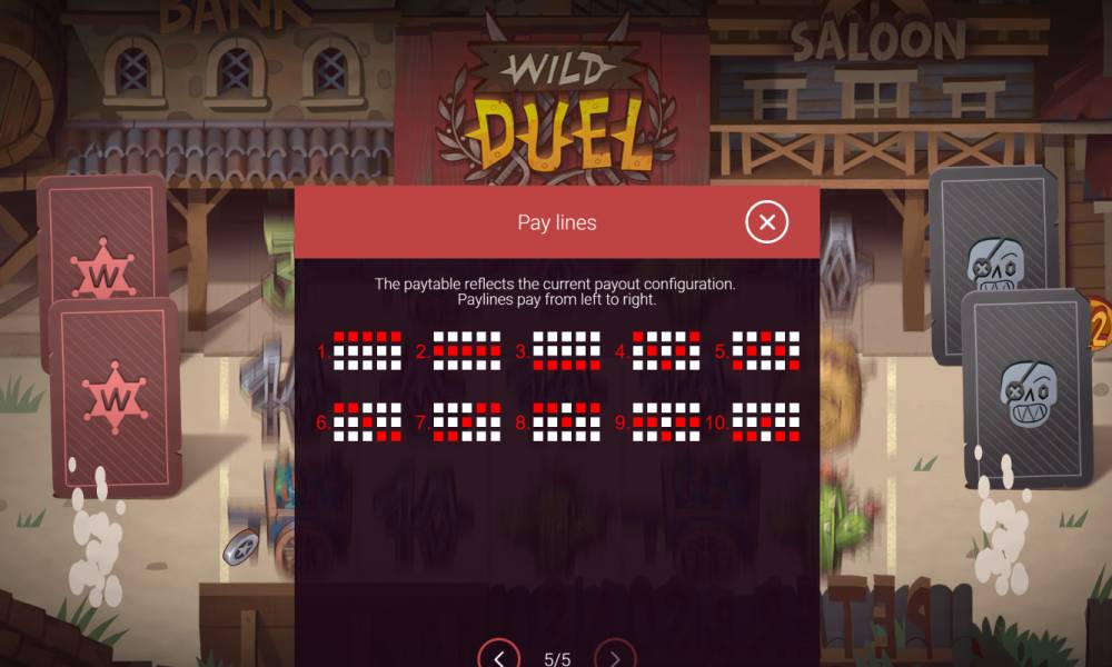 Wild Duel is a pokie with a classic 5×3 field, consisting of 5 reels and 3 rows of symbols. The game features 10 fixed paylines paylines, where combinations are formed from left to right. Basic Rules: