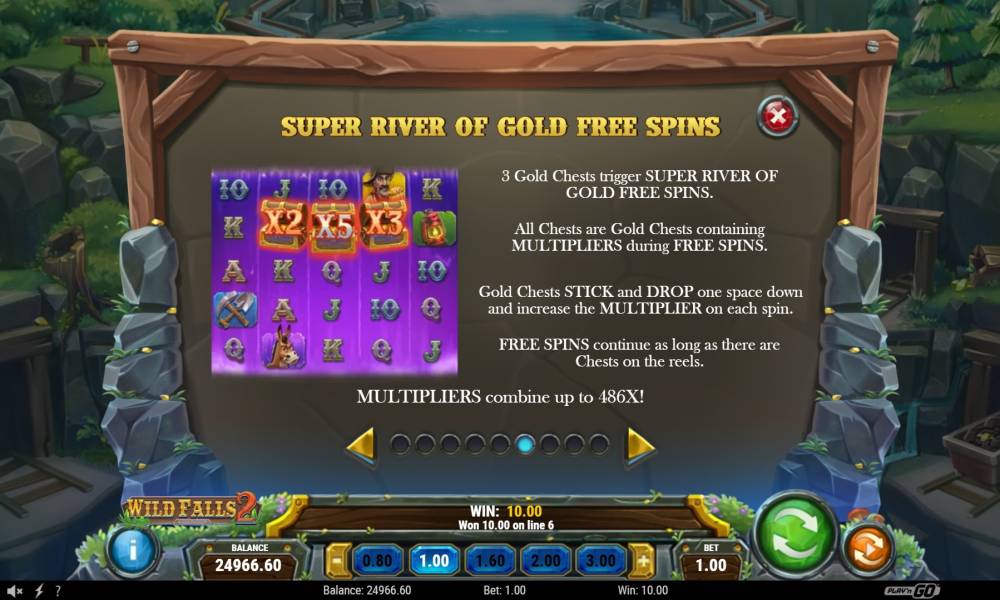 For the most positive experience possible, play in the Wild Falls 2 from Play'n Go only makes sense at honest and decent casinos. The problem lies in the awkward RTP range, which makes users have to settle for just 94.2%. Additional tampering with the settings simply ruins the gameplay.