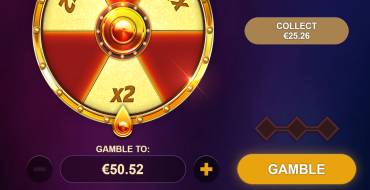 Gamble Feature. If the winnings are 3+ times the bet, the gambler can trigger the risk round. It triggers a wheel of fortune with 6 cells, on which 3 cells are empty (winnings are completely burned), and another 3 cells double the winnings. If you win in one round, you can play 2 more Gamble games (i.e. you can play 3 rounds in a row). The feature does not work on autospins.