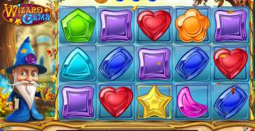 «Wizard of Gems» is a slot machine with five reels and fifteen symbols at the screen. It is possible to play by all twenty active lines only, where paid combinations are formed at. An amount of the bet per each of the lines can vary from one cent to two dollars and a half. This way, it is possible to stake from twenty cents to fifty dollars per spin. This video slot is provided with standard symbols, special elements, free spins and a system of extra multipliers. There is no gambling feature. The basic symbols make winning combinations at the active lines. Several same elements have to make a solid chain starting from the first left reel. As usually, only the most valuable combination at each of the lines is paid. An amount of the win is calculated by two values: the bet per line and the index of formed combination (from x2 to x500). These values are multiplied. In case of several combinations formed at different lines, all payoffs are summarized. The total amount of the win is withdrawn to the customer’s account immediately. The symbols included into the combination burst as soon as the win is charged and new drop out at their positions. If new combinations are formed in result, payoffs are calculated according to the extra multiplier (x2). When this feature is repeated, the multiplier rises up to x3 and then to x5 (maximal). This process goes on while new combinations of same symbols are formed. According to the official website of the producer, the payback index of this model is 96%.