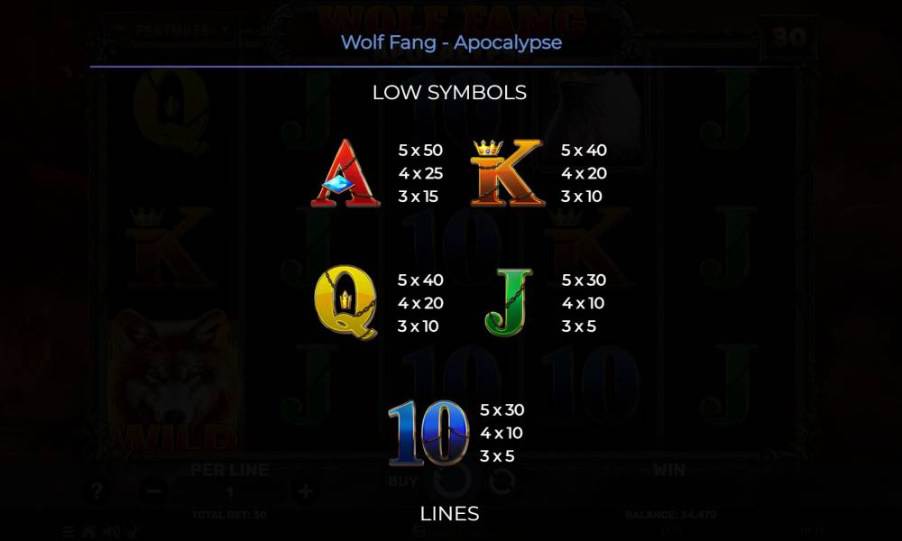 In the case of the Wolf Fang - Apocalypse mobile version is extremely convenient and perfectly optimized. Playing on the phone is comfortable thanks to the absence of hang-ups, relocated button to start spins and not too active charge consumption. All you need is an Internet connection, a standard iOS or Android browser, and a few minutes of free time.