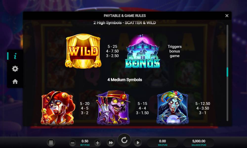 You should only play the Zombie Circus online pokie from Relax Gaming at a reputable casino. There, user data is well encrypted and your money is safe. Plus proven casinos offer people large catalogs of machines, convenient conditions and bonuses for registration, so the beginning of the game will be interesting.