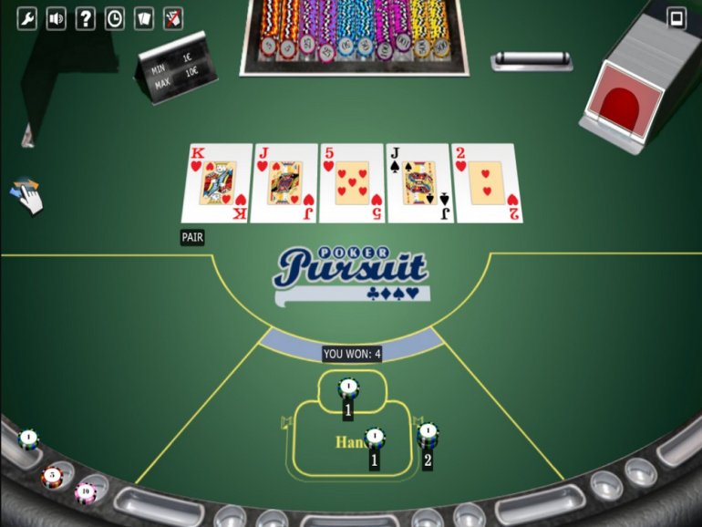 Our reviewers have not yet come across Poker Pursuit with bonuses or progressive jackpots.